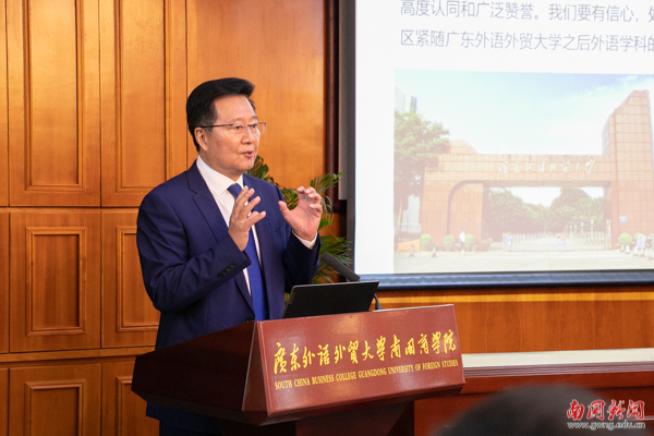 论坛主旨演讲环节,六位名校校长聚焦中国外语高等教育教学改革与发展的新趋势、新格局、新方向,为南国商学院的外语教育教学以及学科专业建设的高质量发展提供宝贵的新理念、新方法和新途径。