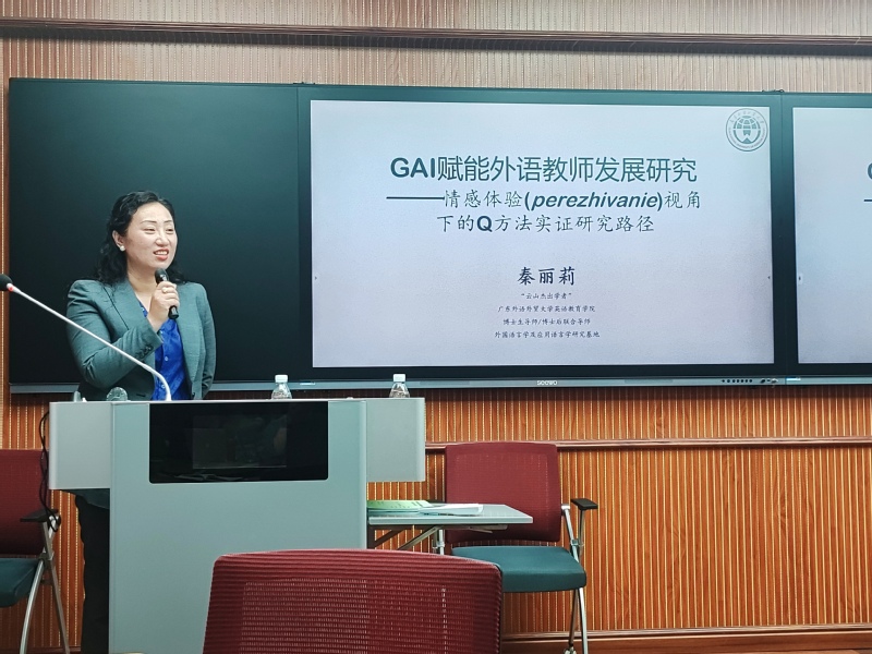 4月9日下午,广东外语外贸大学博士生导师秦丽莉教授应邀于G301教室开展了主题为“GAI赋能外语教师发展研究--情感体验(Perezhivanie)视角下的Q方法实证研究路径”的学术讲座。此次活动大学英语教师发展研究所所长王瑞英主持,研究所全体教师积极参与,共同探寻外语教师发展的新路径。