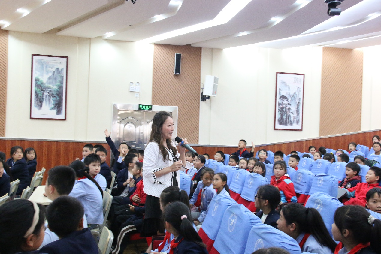 2024年10月23日下午,东语学院副院长许静华为四川省广元市旺苍县佰章小学校220名五年级学生开展题为《多彩的语言世界》的科普讲座,以生动活泼的形式带领学生们认识了从中国语言文字至世界语言谱系等相关基础知识。