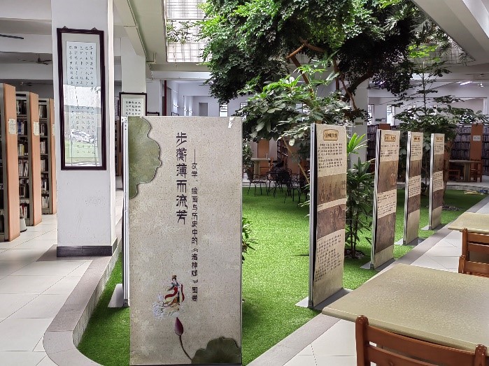 四月起,图书馆在一楼大厅举办《洛神赋图》文化展,向广大师生展示图和相关文本背后的故事。让我们以洛神之名,品东方之美,一起目睹《洛神赋图》的风采吧!