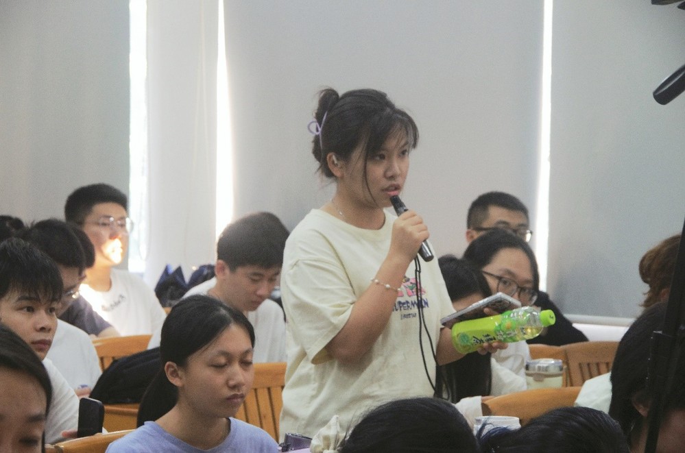 在互动环节中,同学们积极的与王焱教授互动,王焱教授对同学们的问题一一细致回应。尤其是一位同学向王焱教授提出了“如何用老庄的思想应对大学的内卷生活,让大学生适当减少焦虑,但又不过度躺平”这一问题。王焱教授回答道:“人生不只有一条赛道,要学会尝试,找到自己适合的领域。”