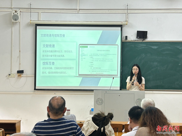李丽珍就图书馆现开展的各项服务也分类作了讲解:图书馆门户网站、移动图书馆、图书借阅、图书荐购、文献传递与馆际互借、阅读推广、咨询服务及信息素养培训。李丽珍重点说明了图书借阅、论文查重、科研发文分析等服务。