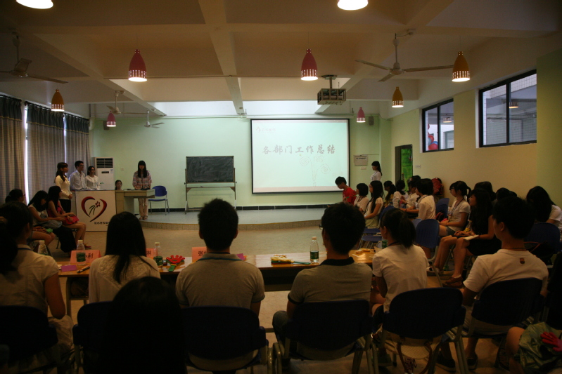 各部门和主席团作总结发言。他们分别对部门的工作和自己的工作历程作了总结。回顾起在中心这两年的成长经历,校友联络部副部陈洁情到深处甚至哽咽落泪,叙述自己对中心的不舍和感恩之情。接着各部门部长分别表达中心指导老师翁琳的信任栽培,同时他们还送上对中心美好明天的祝福。