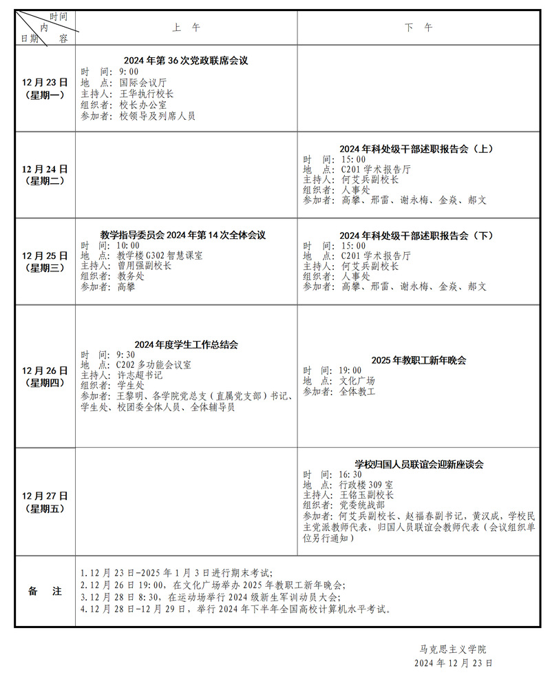 2024年秋季学期第17周会议和活动安排表