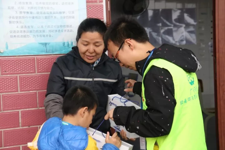 ▲志愿者给老师们发放礼物