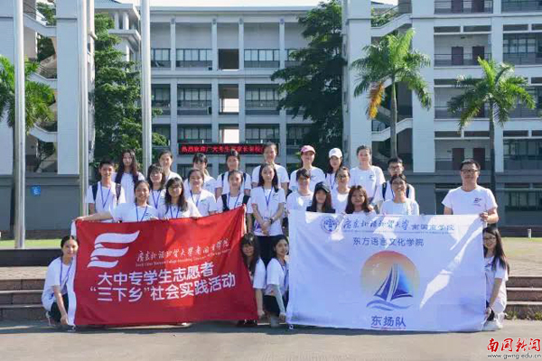 2017年暑假期间,我校组织184名学生共7支三下乡社会实践队伍分别赴清远、河源等地开展以“喜迎十九大,青春助新功”为主题的“三下乡”社会实践活动。在本次三下乡社会实践活动中,我校学生践行学校“通基础,精专业,强外语,重实践”的办学理念,将所学专业带入支教课堂中,并且结合本次三下乡活动的主题,立足于中国梦的学习基础上,为支教点的学生讲述“一带一路”倡议的积极意义,同时创新课堂形式,以课堂教学、科普宣传、社会调研、拜访老党员以及捐赠物资等内容开展实践活动。