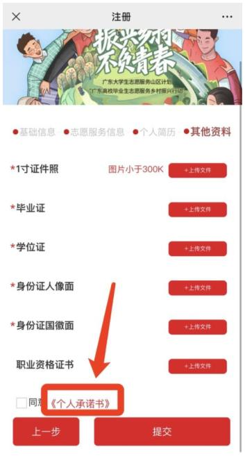 (5)上传相关资料图片(备注:图片格式仅限jpg或者png,1寸证件照大小需小于300k)。