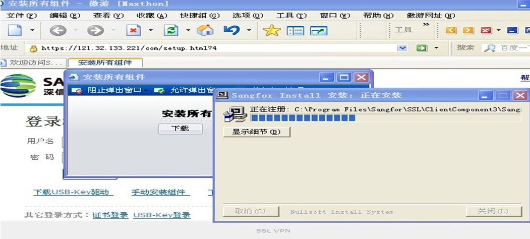 第三步:组件安装界面,等组件安装完成后,请输入您的帐号和密码并按登录。