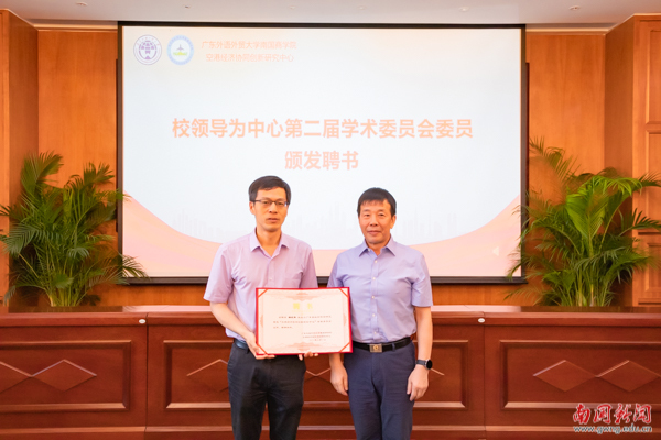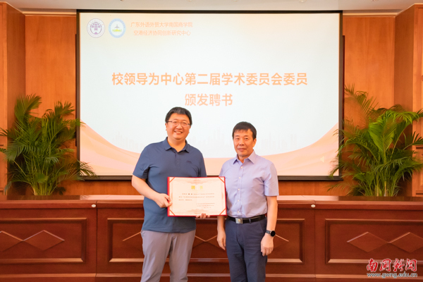 王华在致辞中表示,当前,加快构建中国特色哲学社会科学重大战略任务正在抓紧实施。在2022年,中共中央办公厅印发了《国家“十四五”时期哲学社会科学发展规划》,从国家层面提出要加强“新时代哲学社会科学人才队伍建设”和“中国特色新型智库建设”。在这一过程中,高校作为哲学社会科学发展“五路大军”中最重要的力量,在学科建设、人才培养、国际交流等方面扮演着不可或缺的角色。研究中心第二届学术委员会的成立,对进一步明确中心空港经济研究方向的定位,提高站位,围绕党和国家工作大局和省委省政府中心工作这个主轴,主动对接国家战略布局,有针对性地深挖空港经济关键领域的核心问题,有创造性地从环境、社会和治理新理念上实现错位发展,形成空港经济研究与国家需求衔接紧密关系等方面意义重大。希望新一届学术委员会,进一步提升政治高度、战略维度、理论深度,不断增强服务地方经济能力,打造学术研究有水平、资政服务有深度的高端智库,源源不断为书写好中国式现代化的广东篇章贡献空港智慧与力量。