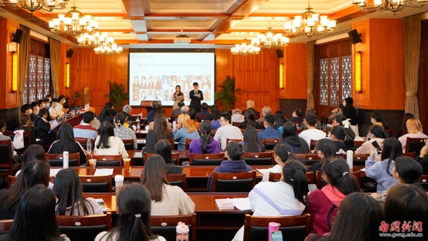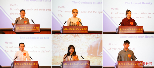 本网讯 12月3日下午,由“强化外语语言训练,提升外语运用能力”领导小组与教务处主办,大学英语教学部承办的首届南国“英语经典”朗诵大赛(大英组)在国际会议厅举行。来自各学院的20名非英语专业学生经过班级初选、视频复赛的选拔,进入决赛。大赛评委由大学英语教学部的教师组成,董事长丁小军,执行校长王华,督学顾也力,副校长王心洁、赵晨出席决赛现场,与师生一同观摩了本次大赛。