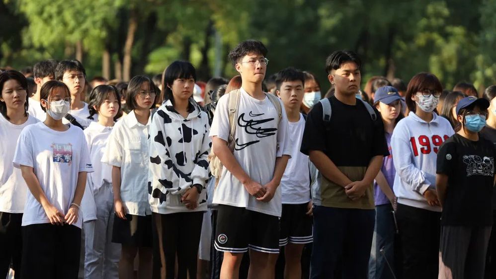 参加仪式的全体师生精神抖擞、英姿勃发,面向国旗齐奏唱国歌,以坚毅的眼神注视着鲜艳的五星红旗冉冉升起。