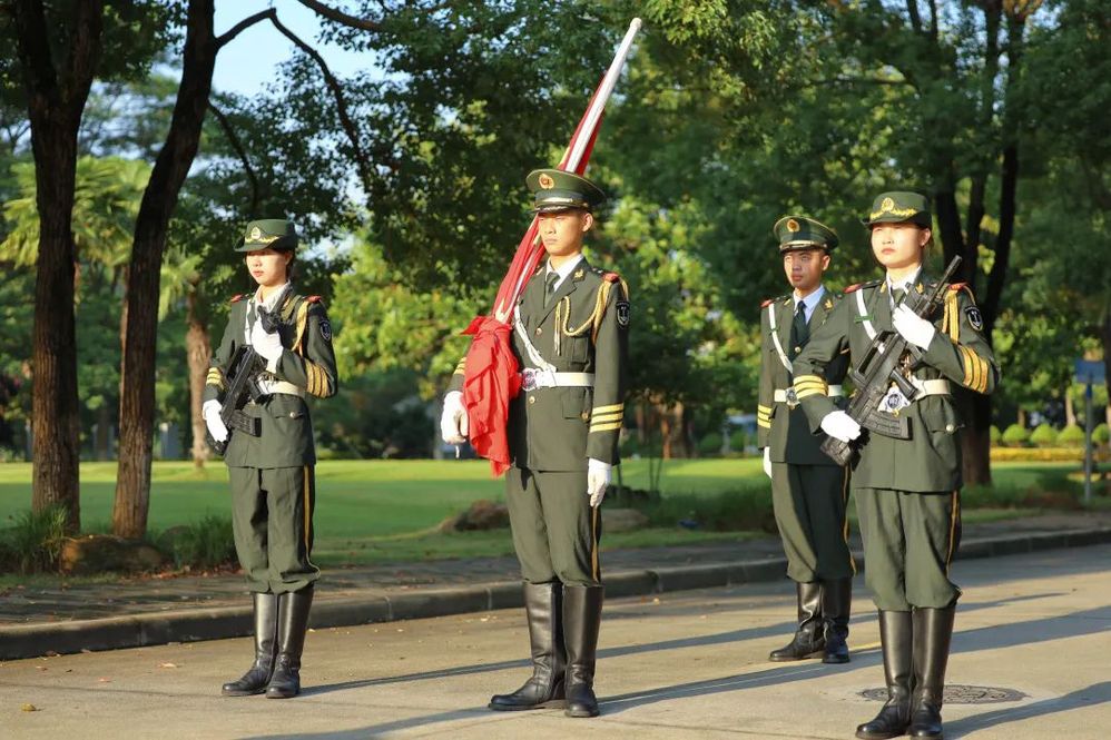 本网讯 2021年10月11日,新媒体与国际传播学院迎来了本学期第一次升旗仪式。7点35分,一位位身姿挺拔、英俊帅气的国旗护卫队成员早已整齐地排好了队列,整装待发。