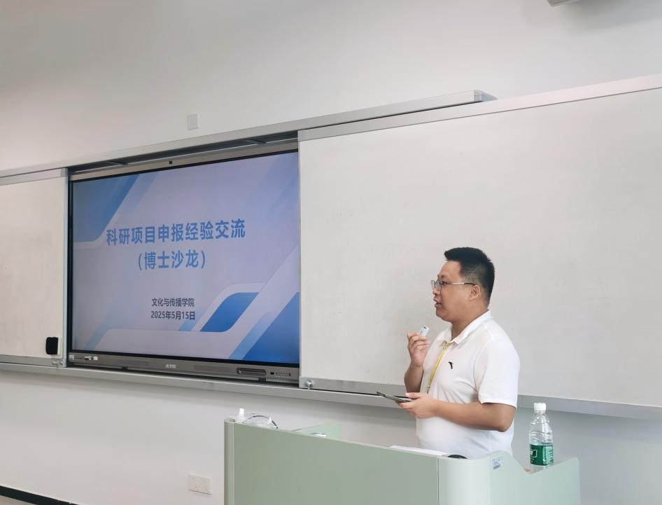 为加强学术交流互动,激发教师科研创新活力,营造浓厚的学术氛围,文化与传播学院于2025年5月15日下午14:30,在教学楼H606承办学校2025年第6期博士沙龙“科研项目申报经验交流”。活动由文传学院副院长吴晟教授主持,梁施乐、张凯、韦宜均三位博士作主旨汇报,学院青年教师科研骨干共同参加本次活动。