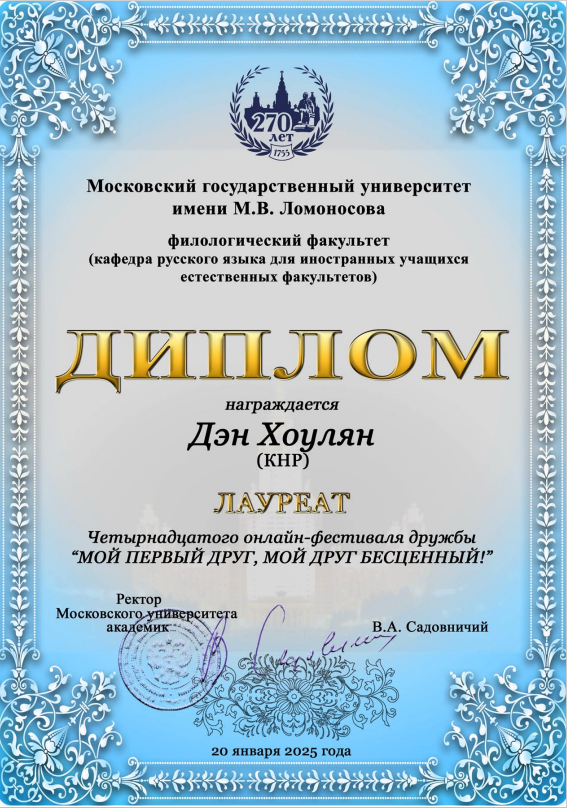 附:“第十四届莫斯科国立大学的诗歌朗诵”获奖名单: