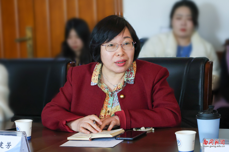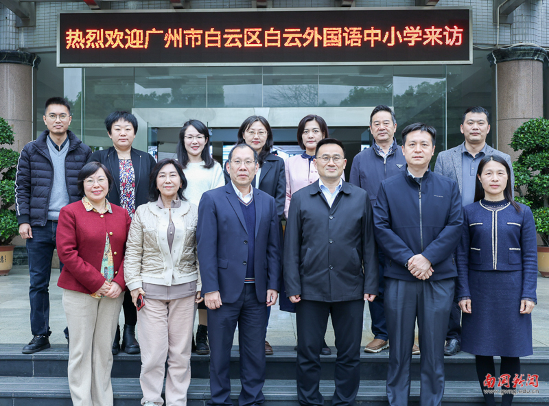 双方观点碰撞,讨论热烈,座谈会在友好的氛围中结束,全体与会人员移步至行政楼前合影留念。参加本次会议的还有,广州市白云区白云外国语中、小学副书记朱传兵,副校长黄哲昙,校长助理兼校办主任朱中振;广外南国商学院英文学院副院长王家宝;教育学院副院长翁琳;艺术学院书记林翠花,艺术学院音乐教育系主任孙家国。(图文/杜逢)