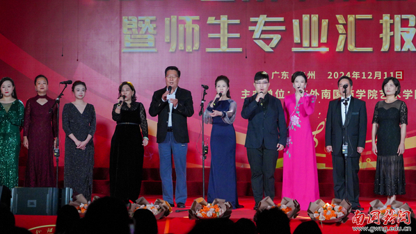 国家一级作曲家、广东省文联音乐舞蹈工作部主任、广东省音乐家协会第十届主席金旭庚为本次音乐节闭幕式致辞。他代表广东省音乐家协会对广外南国商学院艺术学院的师生给予高度评价,认为此次晚会不仅可以充分展示艺术学院师生的专业水平,也为推动音乐艺术的发展做出了积极贡献。同时,金旭庚对本次活动的举办表示热烈的祝贺。