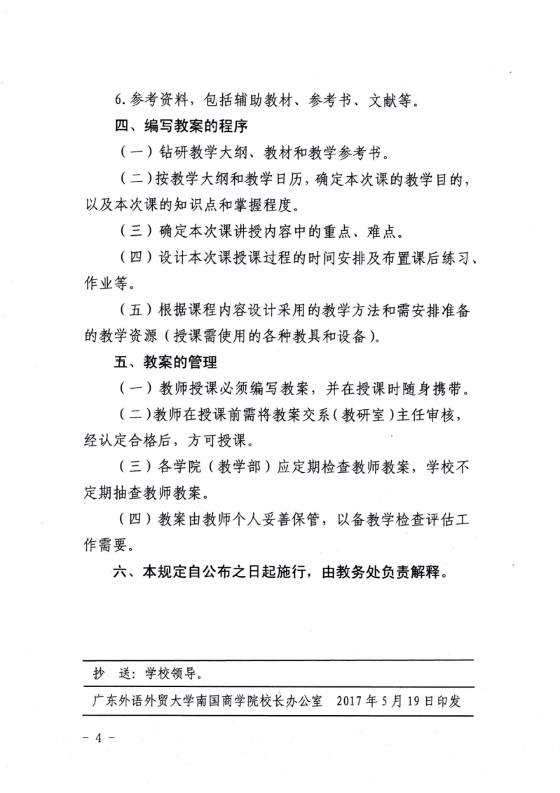 关于印发《广东外语外贸大学南国商学院教案编写暂行规定》的通知