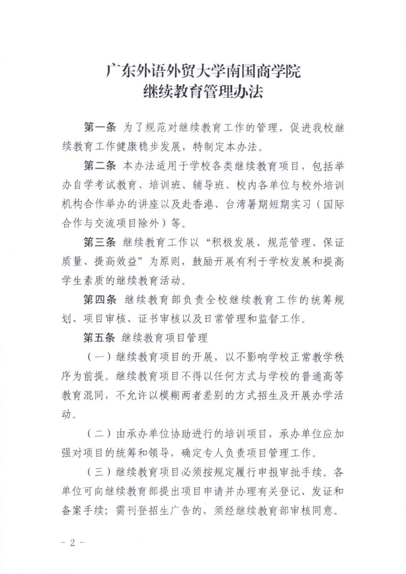 关于印发《广东外语外贸大学南国商学院继续教育管理办法》的通知