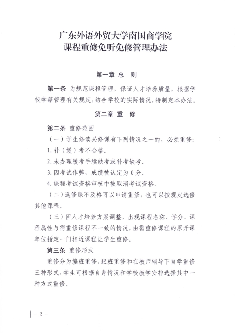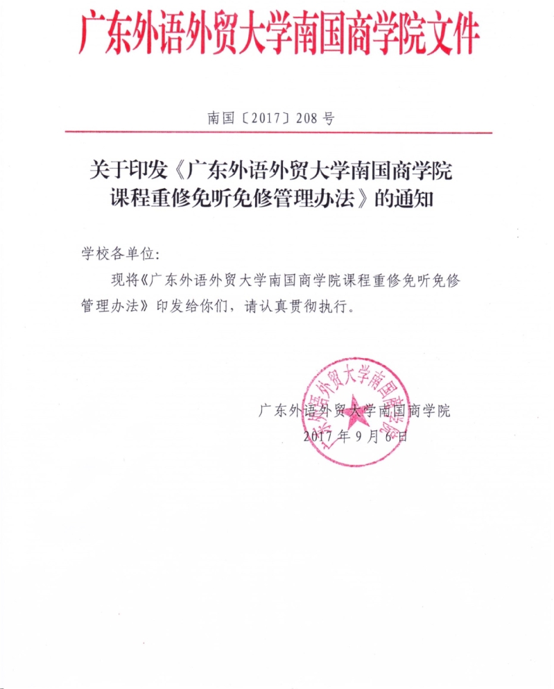 关于印发《广东外语外贸大学南国商学院课程重修免听免修管理办法》的通知