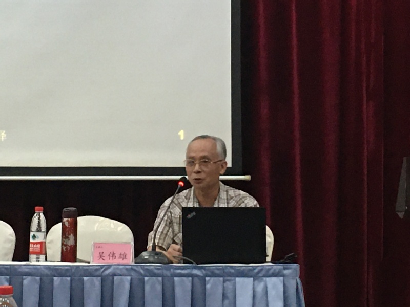 本网讯 2021年4月7日下午15:20在F101教室,我院英汉翻译研究所诚邀吴伟雄译审举行了“涉外活动中诗词佳句的英译”讲座,参加本次讲座的有英语语言文化学院英语学科带头人、翻译专业负责人余东教授、英语专业负责人张映先教授、翻译系主任青立花副教授、杨振同教授、王克明教授和英汉翻译研究所的教师、英文学院的教师和翻译专业的学生。本次讲座由杨振同教授主持。