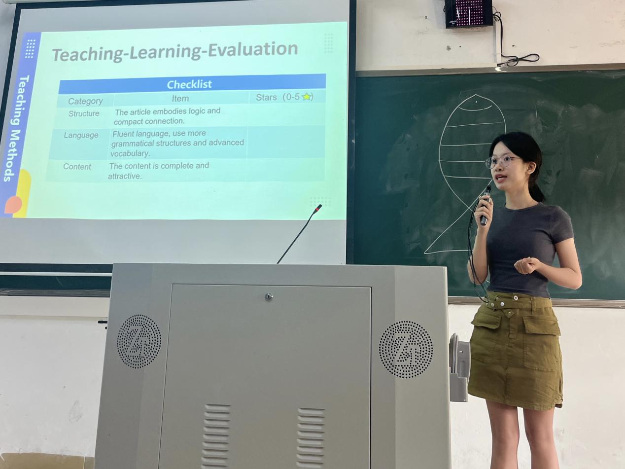 在试讲结束后,陈诗婷老师在发言中指出,举办此次比赛的意义在于为大家创造一个自我锻炼的平台,实现以赛促学,以赛促发展,从而不断提升自身教学综合素养,为今后走上三尺讲台做好充足的准备。她肯定了选手们的精彩表现,并对选手们进行了耐心、细致的点评与指导,内容涵盖教学设计、教学方法、板书制作、教学成果等诸多方面。