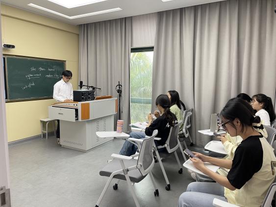 为进一步提高英语师范生教学能力,提高基础教育人才培养的质量,发挥竞赛对提高职前教师教学技能的引领示范作用,英语(师范)系于4月23日下午在实验楼微格实训室举办了第十二届广东省师范生教学技能大赛南商赛区决赛。比赛分现场评审和网络评审两个环节。比赛当天,英语(师范)系主任陈诗婷为比赛致辞,并同翟蓉菲、江宁、潘丹丹和林静担任比赛评委。4位同学在决赛中脱颖而出,成功获得省赛的参赛资格。