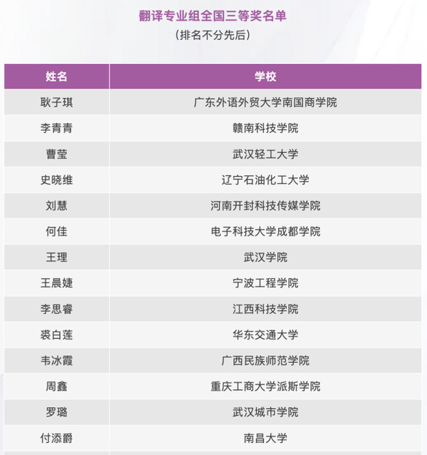 耿子琪获翻译专业组全国三等奖比赛成绩