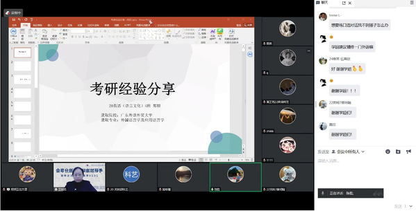 本网讯 为进一步调动学生考研积极性,帮助考研学子明确目标,增强备考信心,为有意向深造的学生解读“研”途中的疑难点,12月3日,我院线上举办了“考研加油站”经验分享会。本次活动邀请到我院2023、2024届成功考研上岸毕业生罗彩怡、袁乐昕、郭科艺、郑妍,分享备考和申研的经验。活动由副院长陈胜教授主持王铭扬老师负责组织,积极备考的21级和有读研深造意向的22级、23级学生参加活动。