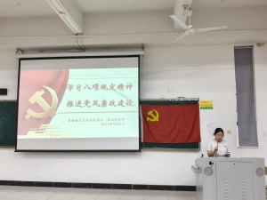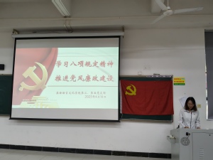 为进一步深入贯彻中央八项规定精神学习教育,强化党员政治责任感与使命感,筑牢思想防线,锤炼党性作风,英文学院第二、第五党支部于4月16日在G101开展了“深入贯彻中央八项规定精神,推进党风廉政建设”专题学习活动。