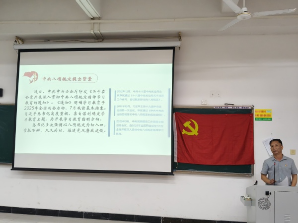 党支部书记刘江奎带领全体同志学习了中央八项规定及其实施细则,深入解读了中央八项规定精神实质,并剖析了违反中央八项规定的主要表现形式。刘江奎强调,每一位同志都应具备高度的政治责任感和使命感,以持之以恒的精神将中央八项规定精神落实到实际生活中。习近平总书记多次指出,中央八项规定是改进作风的切入口和动员令,必须严抓不懈,坚决防止“四风”问题反弹回潮。全体党员要筑牢思想防线,践行宗旨意识,保持强大定力,从点滴小事上做起,坚守拒腐防变的思想防线,以优良的作风确保党的先进性和纯洁性。