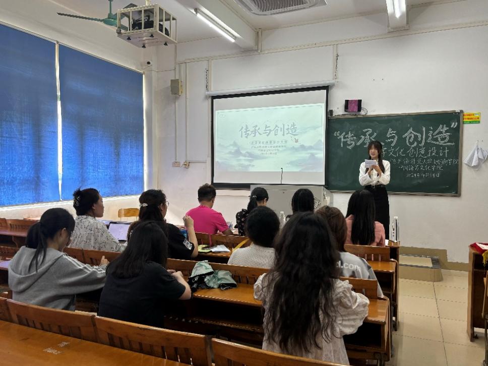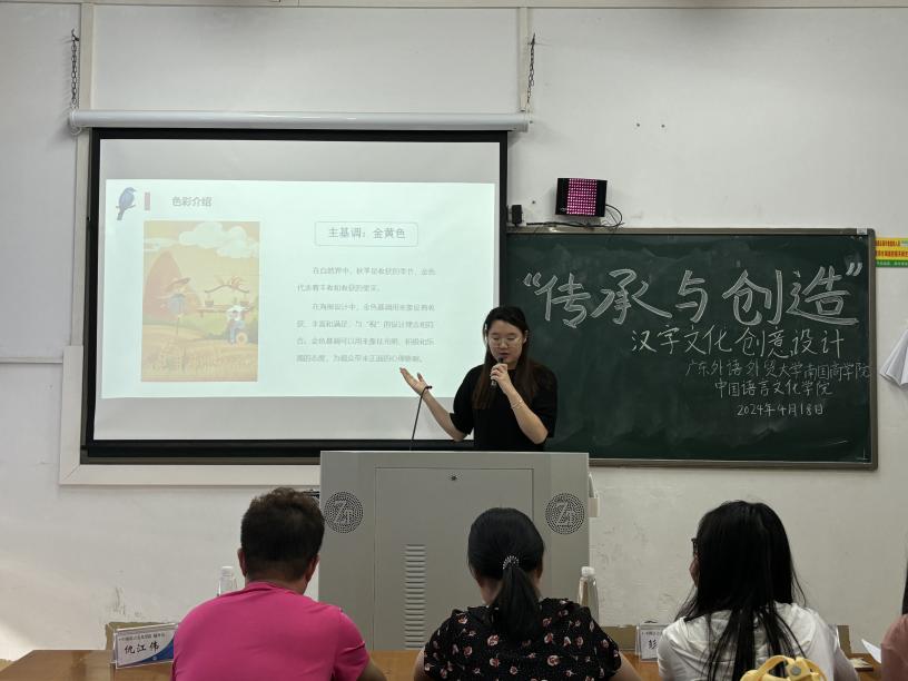 本网讯 为弘扬和传播汉字文化,引导学生增强文化自觉,坚定文化自信,推进跨学科跨专业的“思、专、创”融合,激发学生文艺创新创造新活力,2024年4月18日下午,由中国语言文化学院主办的“传承与创造”汉字文化创意设计决赛在教学楼A306顺利举行,中文学院陈智秀老师、仇江伟老师、童梦华老师以及彭晓婷老师出席决赛现场并担任评委。