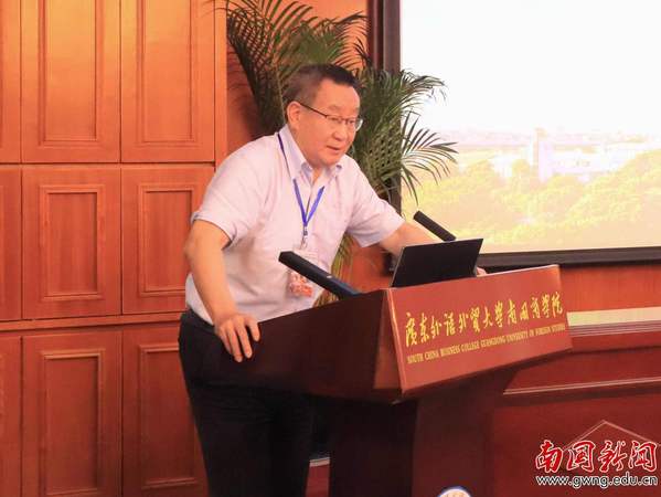 (深圳大学人文学院沈金浩教授作主旨报告 何善恒/摄)