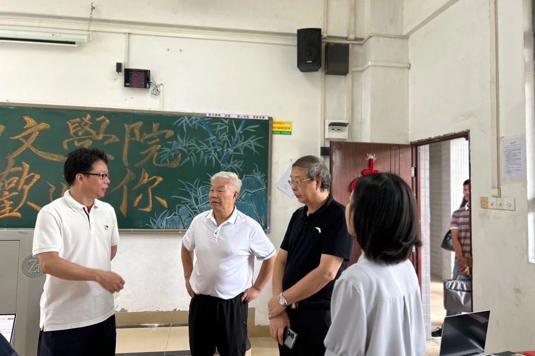 校、院领导莅临迎新教室现场,学校党委书记许志超、副校长赖志立、中文学院院长王毅、副院长吴晟、党总支部书记冯钿、中文学院团委书记兼学生会指导老师陈星龙高度重视此次迎新活动,在报道现场亲切问候新生,密切关注迎新工作的进行情况 ,并称赞了迎新教室布置。