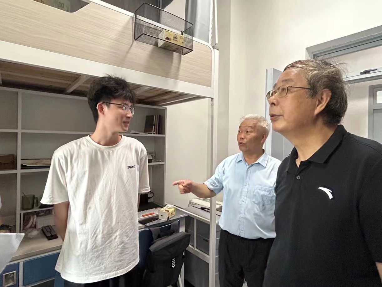 中文学院院长王毅、中文学院副院长吴晟、中文学院及新媒学院党总支部书记冯钿与中文学院新生辅导员杨若颉、赵丽萍走访了多个学生宿舍。