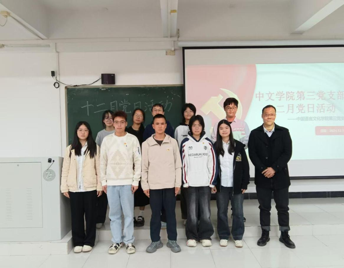 本网讯 弘扬历史经典,传承优秀文化。中国语言文化学院第一党支部与第三党支部于12月12日在F402共同举办了一场别开生面的主题党日活动。以 “党启昌期运,泰象焕阳春” 为主题,不但让师生们感受到了浓浓的新春氛围,更是一次深入学习贯彻习近平新时代中国特色社会主义思想,传播红色精神、增强文化自信的生动实践。